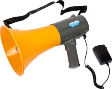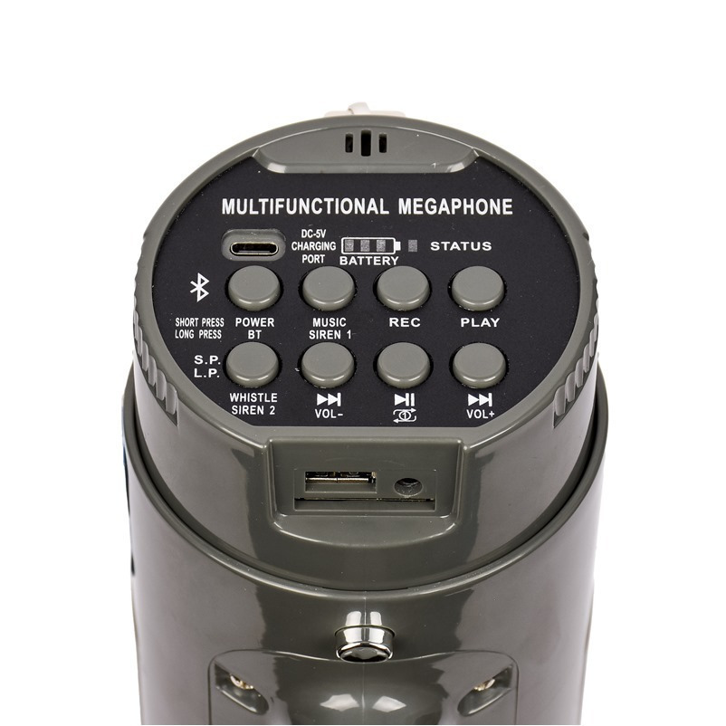 Τηλεβόας με ενισχυτή 15W, επαναφορτιζόμενη μπαταρία λιθίου (18650), διάμετρος 15cm, μήκος 34cm.