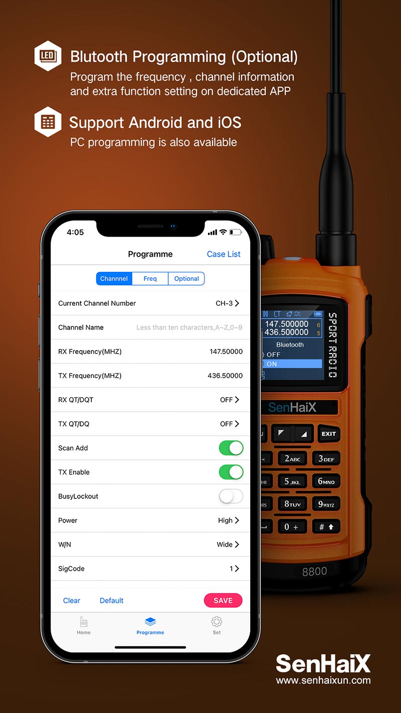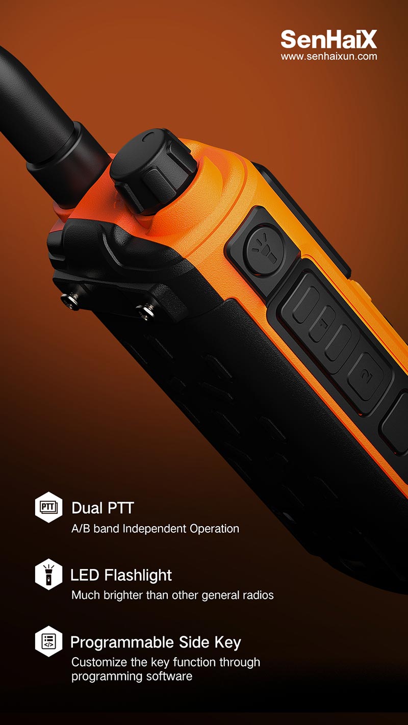 Ο SenHaix 8800 είναι ένας επαγγελματικός φορητός ασύρματος UHF/VHF σχεδιασμένος για απαιτητικά περιβάλλοντα και επαγγελματίες που χρειάζονται απόλυτη αξιοπιστία. Με δυνατότητα λήψης Airband, σύνδεση Bluetooth για προγραμματισμό και πλούσιες λειτουργίες ασφαλείας και επικοινωνίας, αποτελεί την ιδανική επιλογή για χρήση σε εξωτερικούς χώρους, βιομηχανίες, ραδιοερασιτέχνες, ομάδες διάσωσης και όχι μόνο.