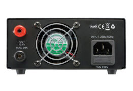 This CE-Approved, affordable switching power supply packs a lot of features into an ultra-compact, lightweight design that features 9-15VDC variable output and delivers up to 20A continuous, 30A peak. Convenient for radio users, the Noise Offset Circuit moves unwanted switching noise to another frequency. Other features include a large illuminated digital Volt/Amp meter, rear panel binding posts (30A peak/a pair), front panel quick terminals (5A peak/a pair, banana for E, Anderson power Poles for T), voltage adjust (9-15V) or fixed at 13.8V, ripple less than 80mVp-p and triple circuit protection for short-circuit, over temperature, and current limiting.