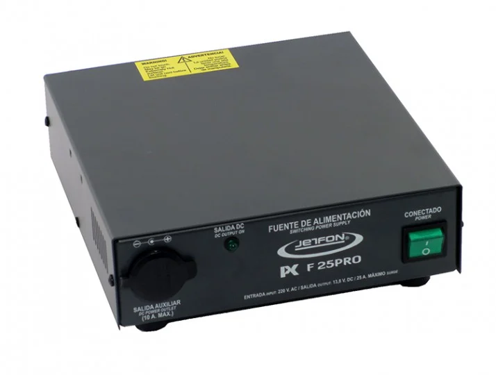 Το Jetfon PC-25 PRO είναι ένα υψηλής απόδοσης switching τροφοδοτικό, σχεδιασμένο ειδικά για ασύρματες επικοινωνίες. Προσφέρει σταθερή έξοδο 13.8V, χαμηλό ηλεκτρικό θόρυβο και υψηλή αξιοπιστία, ενώ ο compact και ελαφρύς σχεδιασμός το καθιστά ιδανικό για κάθε σταθμό βάσης.