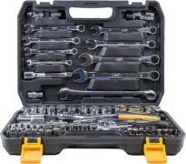 Το σετ καλύπτει κάθε ανάγκη χάρη στις δύο καστάνιας (Clicket): μία μεγάλη 1/2″ για τις βαριές εργασίες (μπουλόνια τροχών, μηχανή) και μία μικρή 1/4″ για λεπτοδουλειές και σημεία με περιορισμένη πρόσβαση. Περιλαμβάνει επίσης μπουζόκλειδα (16mm & 21mm), απαραίτητα για το service του αυτοκινήτου ή της μηχανής.