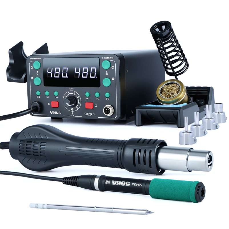Dύο σε ένα. Σταθμός κόλλησης και θερμού αέρα αντιστατικός, Aκριβή ρύθμιση θερμοκρασίας 100C – 480C (θερμός αέρας) (ισχύς 700W) , 200C – 480C(75W) (κολλητήρι)