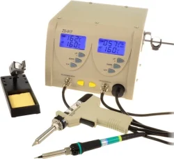 Αντιστατικός σταθμός κόλλησης και θερμού αέρα, ρυθμιζόμενη θερμοκρασία, ψηφιακές ενδείξεις, ενσωματώνει ρυθμιζόμενο τροφοδοτικό 0-15V DC 1A με προστασία. Ιδανικό για εργαστήρια επισκευής κινητών τηλεφώνων και laptop.