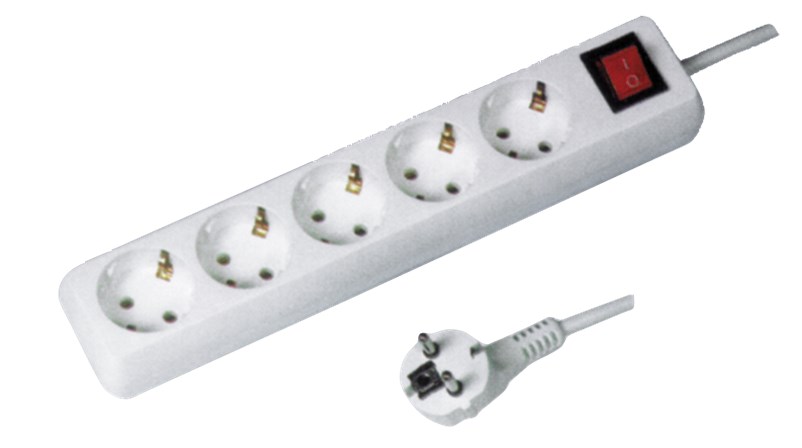 - Πολύμπριζο σούκο 5 θέσεων με διακόπτη, 3G1.5mm, λευκό