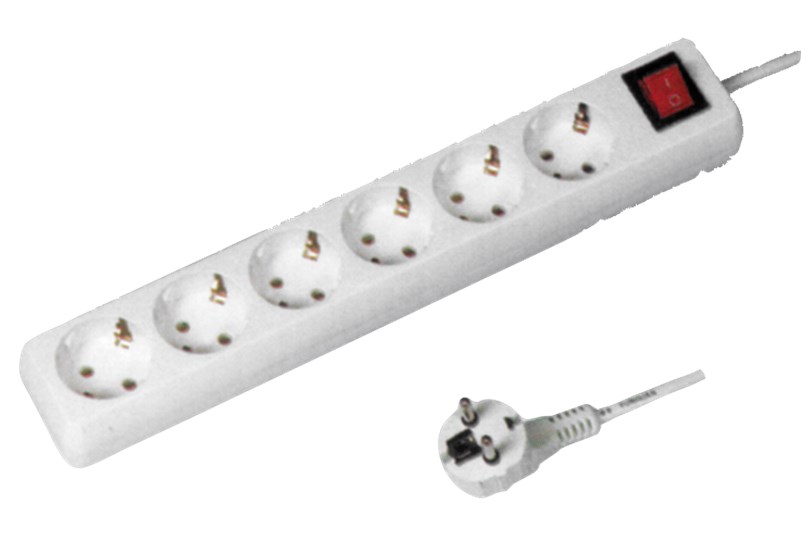 - Πολύμπριζο σούκο 6 θέσεων με διακόπτη, 3G1.5mm, λευκό