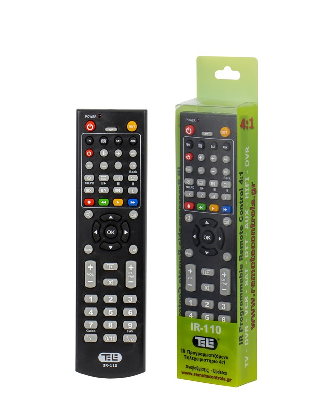 Το IR-110 είναι ένα πρωτοποριακό τηλεχειριστήριο 4:1 που ενσωματώνει μια σειρά από βασικές λειτουργίες TV για τον ταυτόχρονο χειρισμό 2 συσκευών χωρίς να απαιτείτε αλλαγή του είδους της συσκευής από το τηλεχειριστήριο.