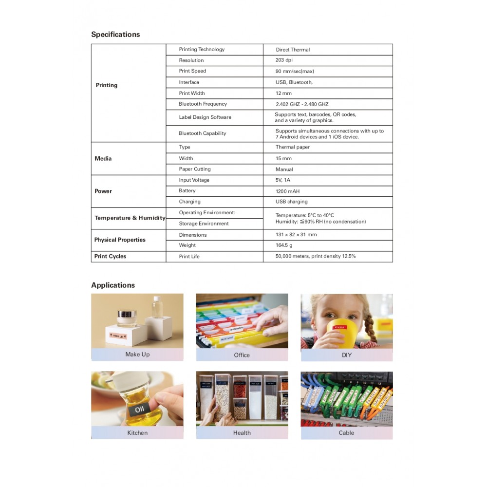 Ο G&G GG-D110 φορητός εκτυπωτής ετικετών διαθέτει σύνδεση USB και υποστήριξη TSPL emulation για εύκολη ενσωμάτωση σε συστήματα εκτύπωσης ετικετών. Υποστηρίζει πολλαπλά character sets συμπεριλαμβανομένων Ελληνικών, καθώς και μεγέθυνση χαρακτήρων έως 10 φορές με δυνατότητα περιστροφής και mirror printing. Δεν αποτελεί κατάλληλη επιλογή για εκτύπωση μεγάλων ετικετών ή για χρήση υψηλού όγκου παραγωγής.