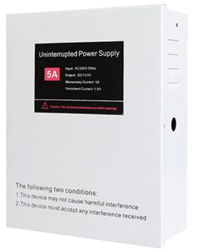 Τροφοδοτικό γραμμικό σταθεροποιημένο 12VDC/5A (Peak) 1.8A συνεχόμενα. Υποστηρίζει μπαταρία (12V/7Ah) για λειτουργία αυτονομίας (δεν περιλαμβάνεται).