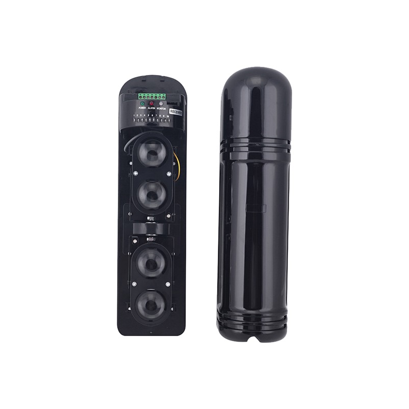 Beam τετραπλής δέσμης μέγιστη εμβέλεια σε εξωτερικό χώρο 200m, 4 δεσμες, διεγείρεται όταν διακοπούν και οι 4 δέσμες, τάση τροφοδοσίας 12-24VDC ή 11-18V AC.