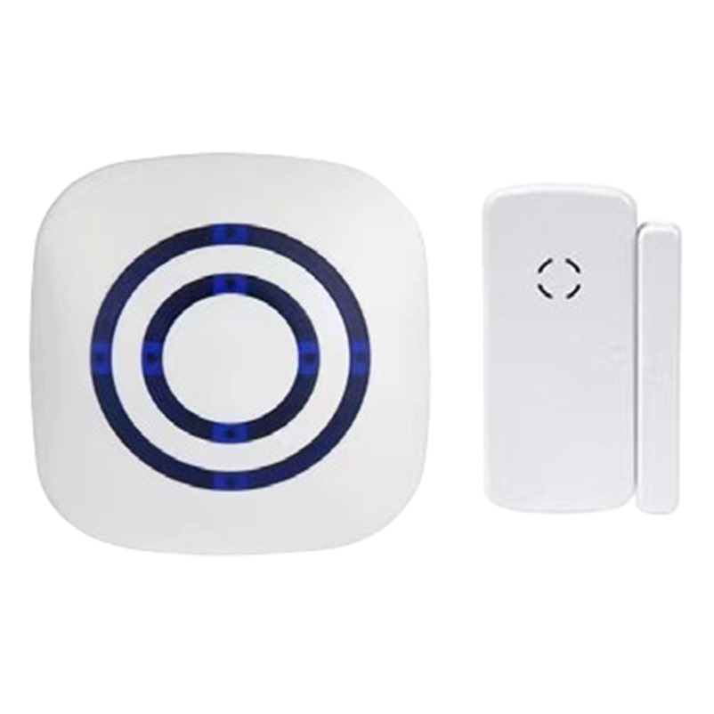 Σετ κουδούνι ειδοποίησης ανοίγματος πόρτας. Πομπός με μαγνητική επαφή, δέκτης με ηχητική και οπτική ειδοποίηση, τρεις τρόποι ειδοποίησης (ηχητική και οπτική, μόνο ήχος, μόνο οπτική).