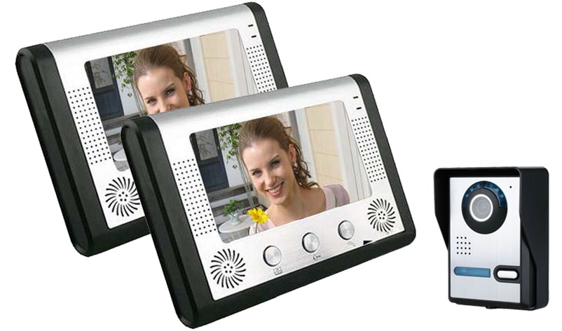 Σετ θυροτηλεόρασης 2 μόνιτορ & 1 κάμερα, οθόνη: 7″ TFT LCD, Kάμερα 1/4″ CMOS, ανοξείδωτο κράμα, Aπαιτείται παροχή στην οθόνη τροφοδοσία κάμερας 15V/1.5A, 4 καλώδια από κάμερα σε οθόνη και 2 από κάμερα σε κυπρί .