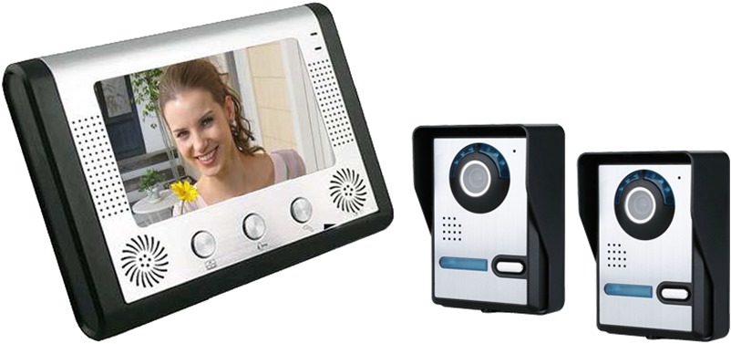 Σετ θυροτηλεόρασης 1 μόνιτορ & 2 κάμερες, οθόνη: 7″ TFT LCD, κάμερα 1/4″ CMOS, ανοξείδωτο κράμα, απαιτείται παροχή στην οθόνη τροφοδοσία κάμερας 15V/1.5A, 4 καλώδια από κάμερα σε οθόνη και 2 από κάμερα σε κυπρί.