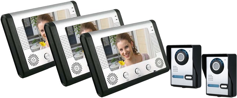 Σετ θυροτηλεόρασης 3 μόνιτορ & 2 κάμερες, οθόνη: 7″ TFT LCD, κάμερα 1/4″ CMOS, ανοξείδωτο κράμα, απαιτείται παροχή στην οθόνη τροφοδοσία κάμερας 15V/1.5A, 4 καλώδια από κάμερα σε οθόνη και 2 από κάμερα σε κυπρί. Για άνοιγμα σε κυπρί πόρτας προτείνεται τροφοδοτικό PSU-3ACR.