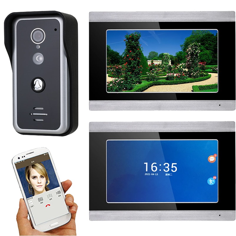- Σετ θυροτηλεόρασης, 2 οθόνες με δυνατότητα παρακολούθησης μέσω κινητού τηλέφώνου (Εφαρμογή Tuya).